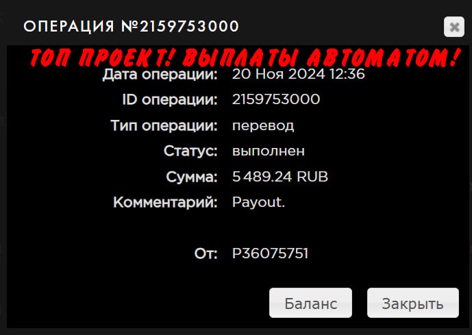 ПРОЕКТ СУПЕР!!! ВЫПЛАТЫ МОМЕНТАЛЬНЫЕ!!! ПРИСОЕДИНЯЙТЕСЬ!!! ПЛАТИТ!!! Дата операции: 15 Авг 2024 21:37