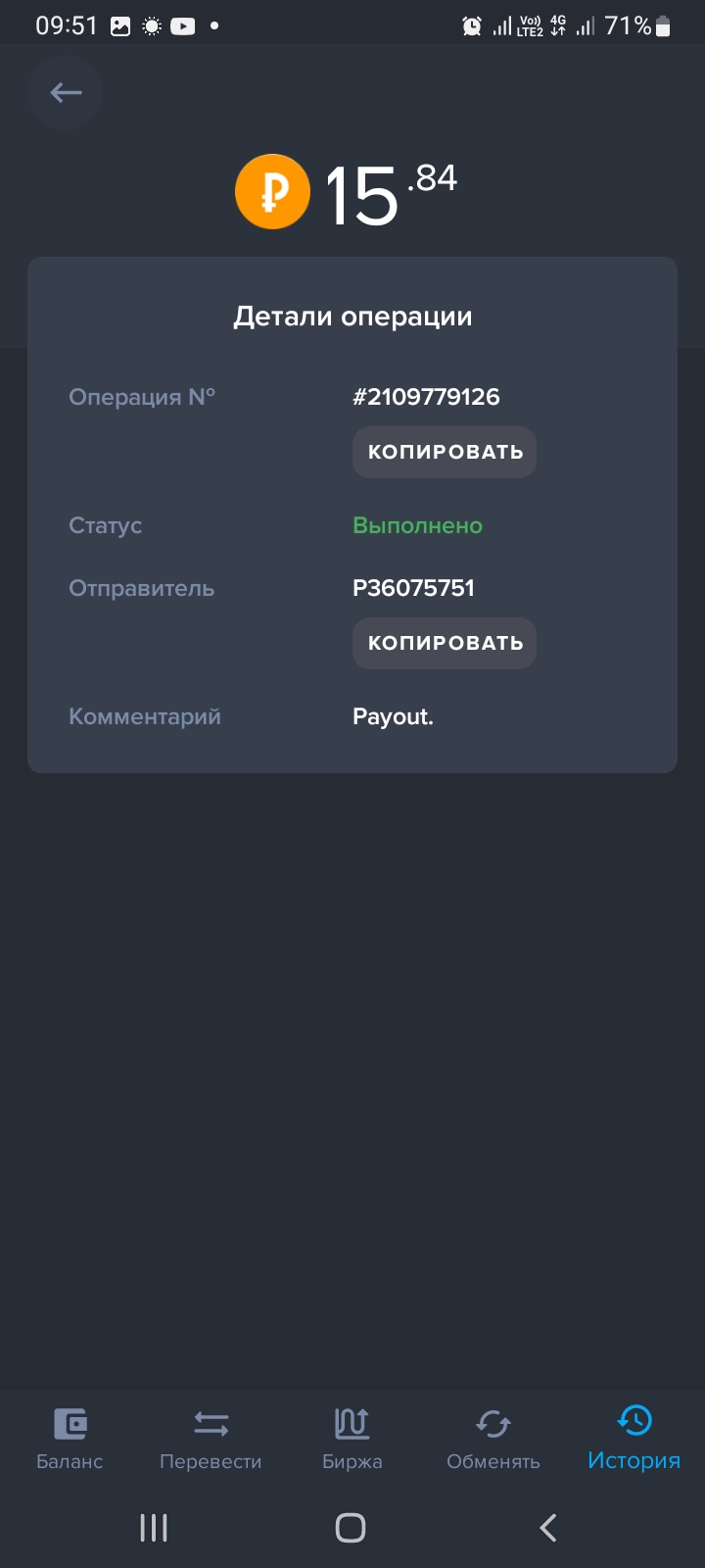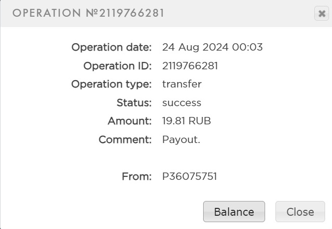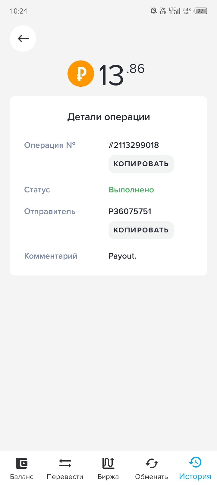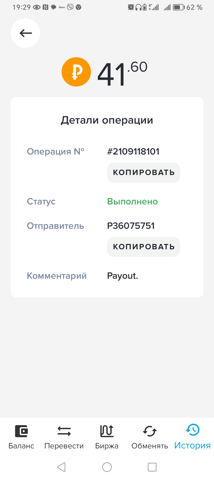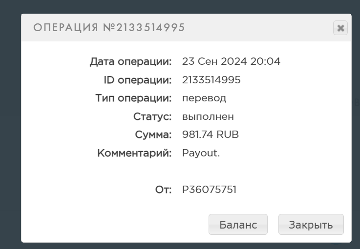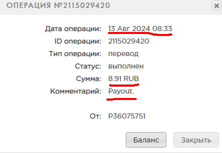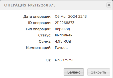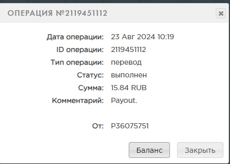 Получил первую выплату,спасибо за это.Дата операции: 21 Май 2024 15:03