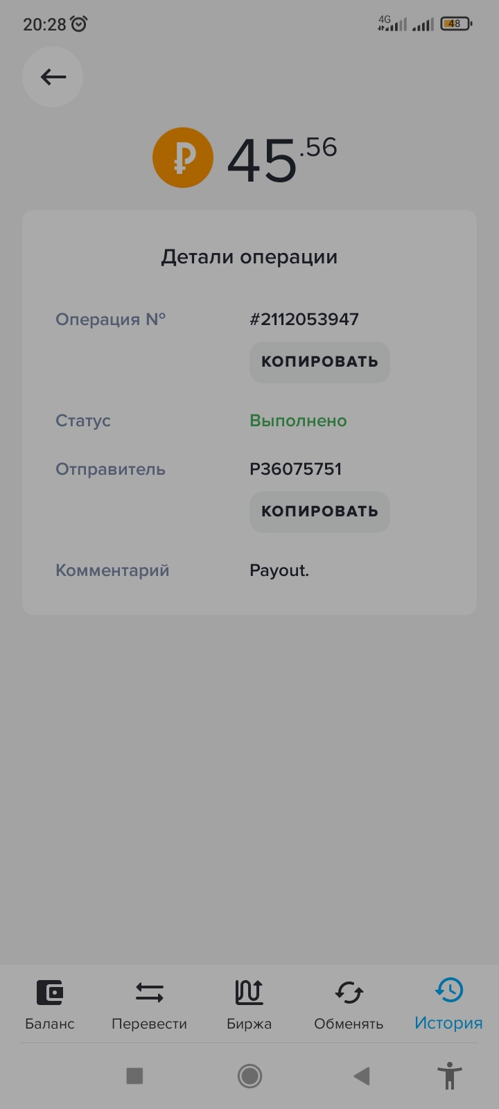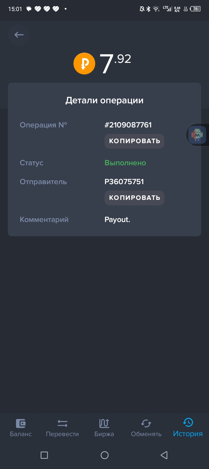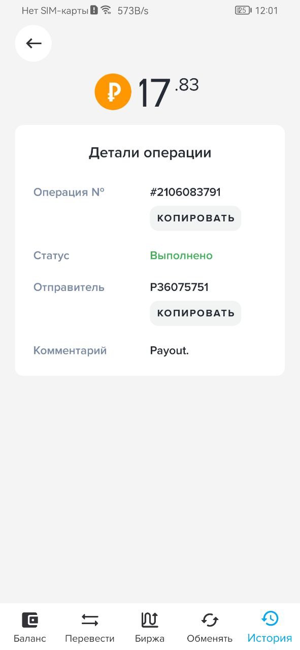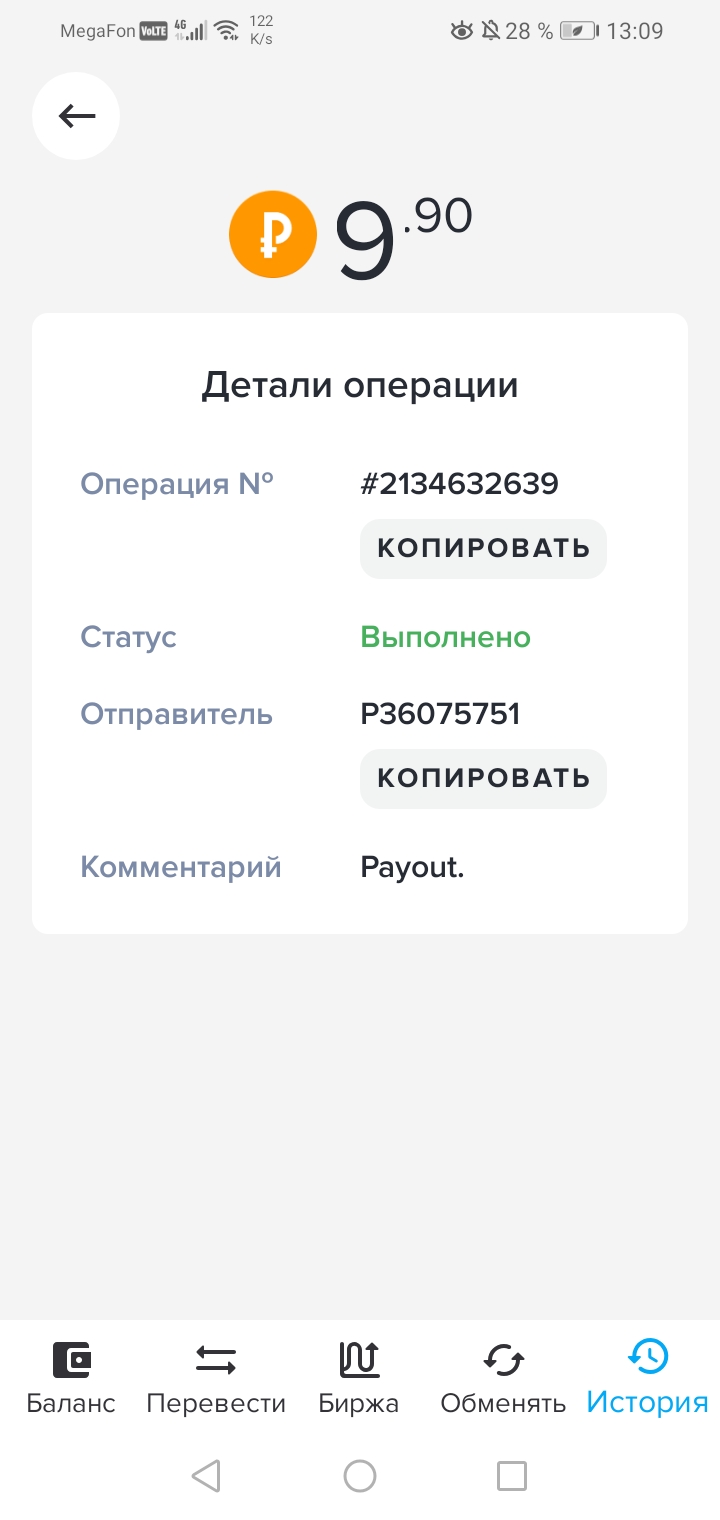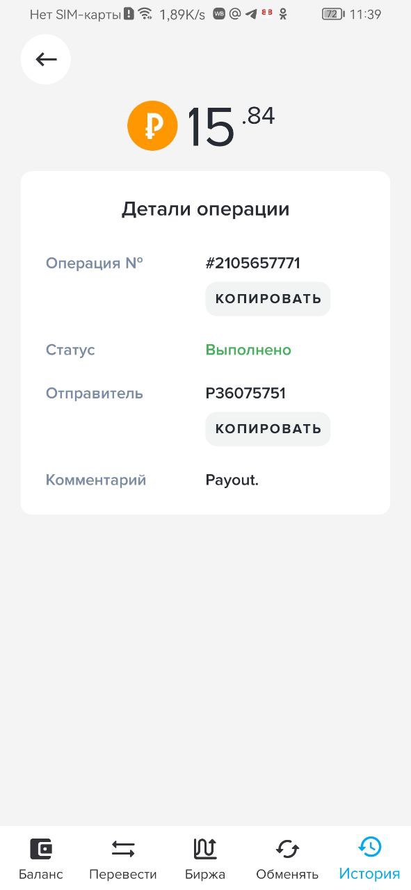 Отличный проект работает как часики быстрая выплата Дата операции: 28 июля 2024 07:53