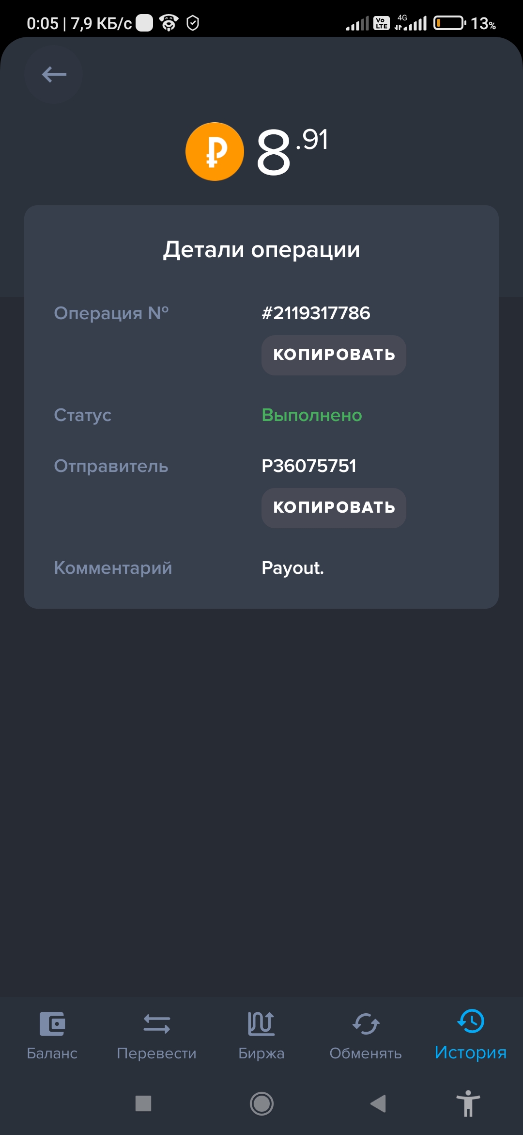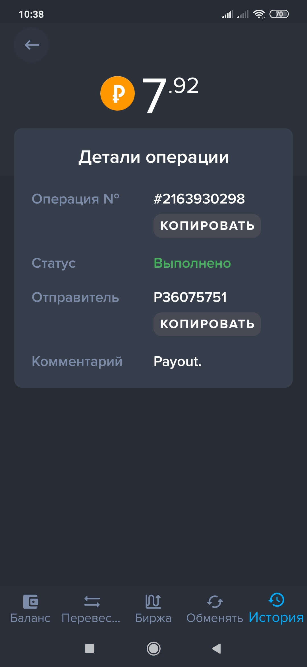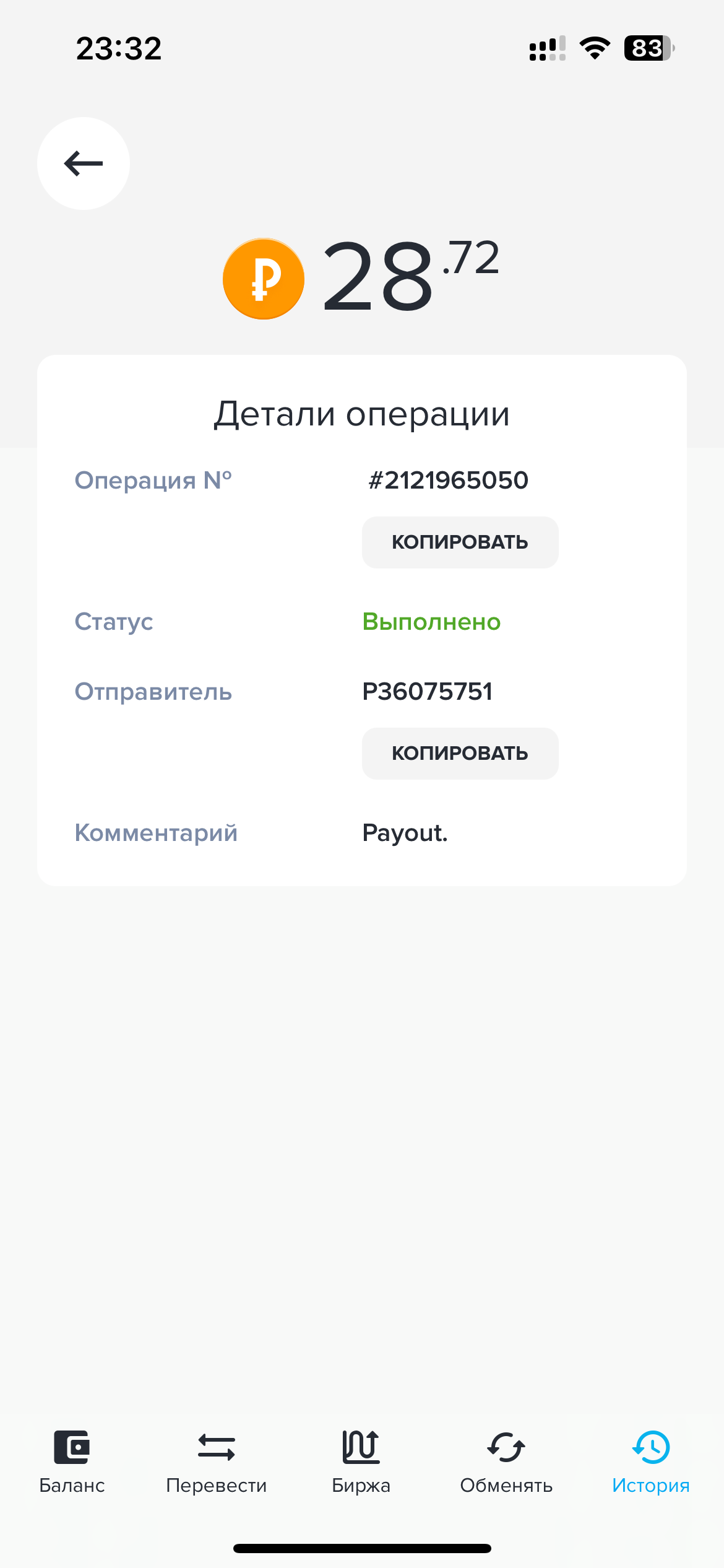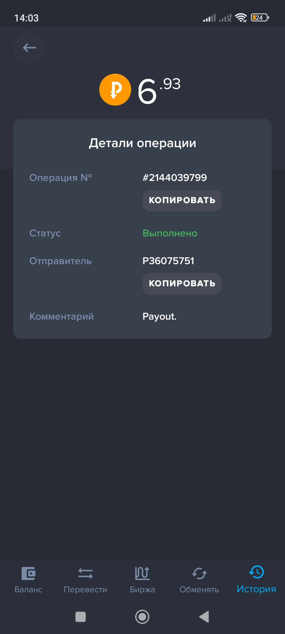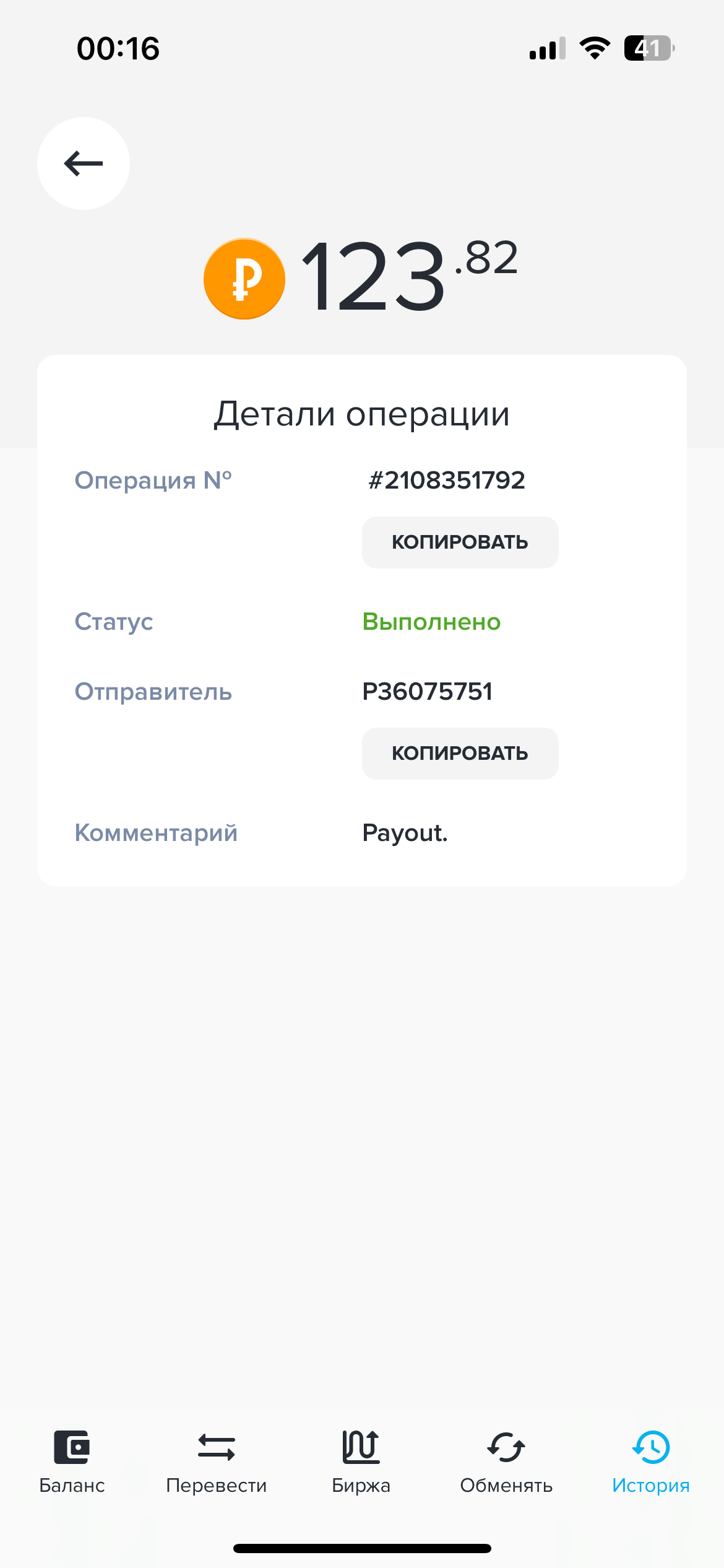 выплаты идут вот доказательство Дата операции: 17 Дек 2023 12:29