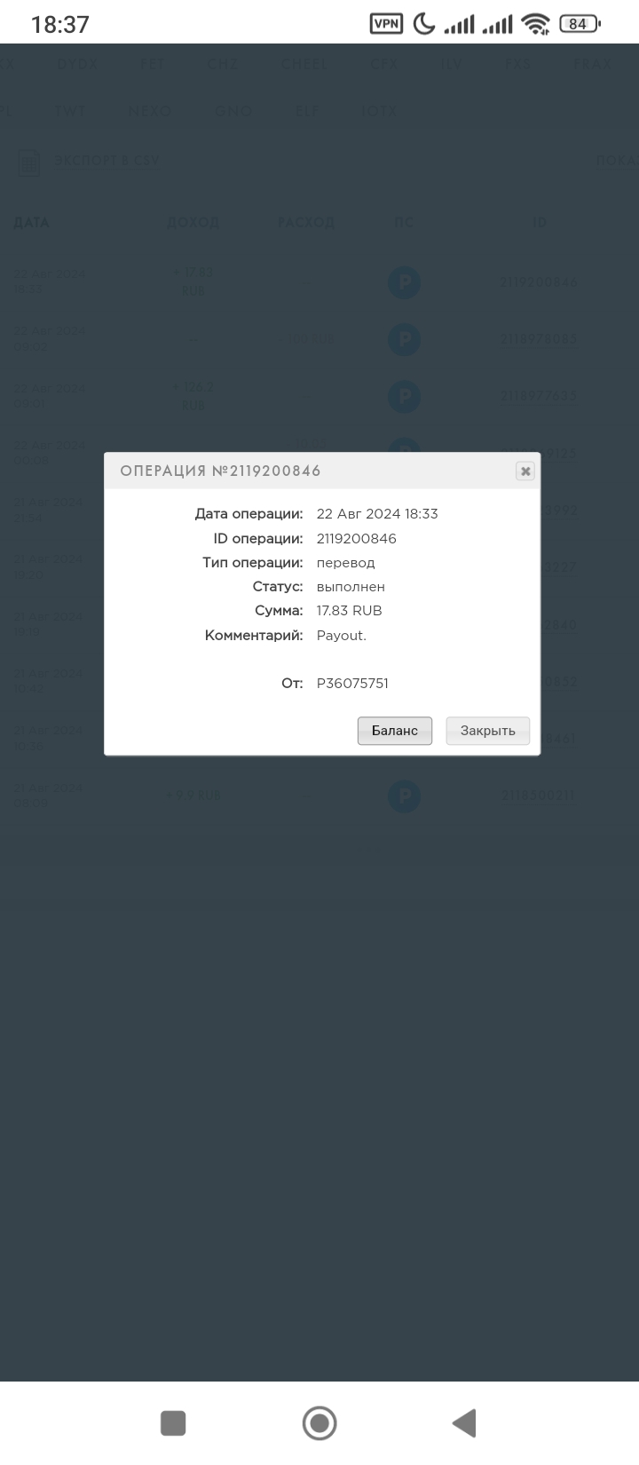 всё класс очередная выплата Дата операции: 23 Ноя 2023 20:48