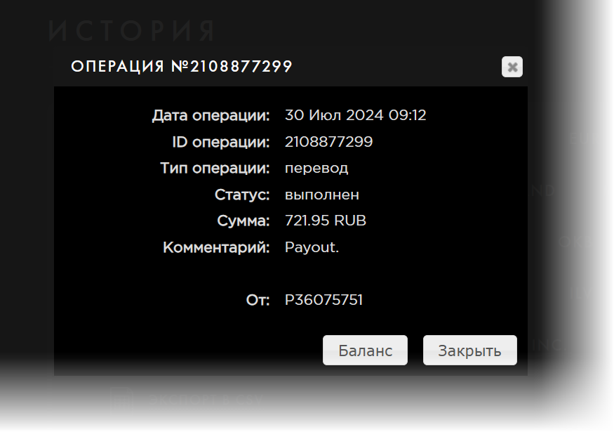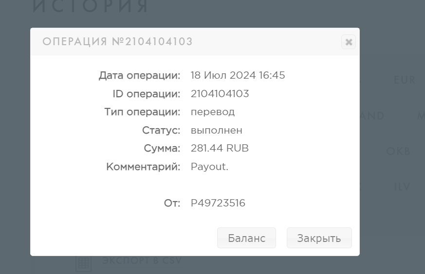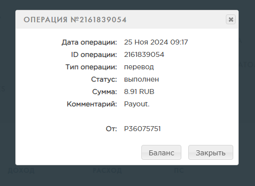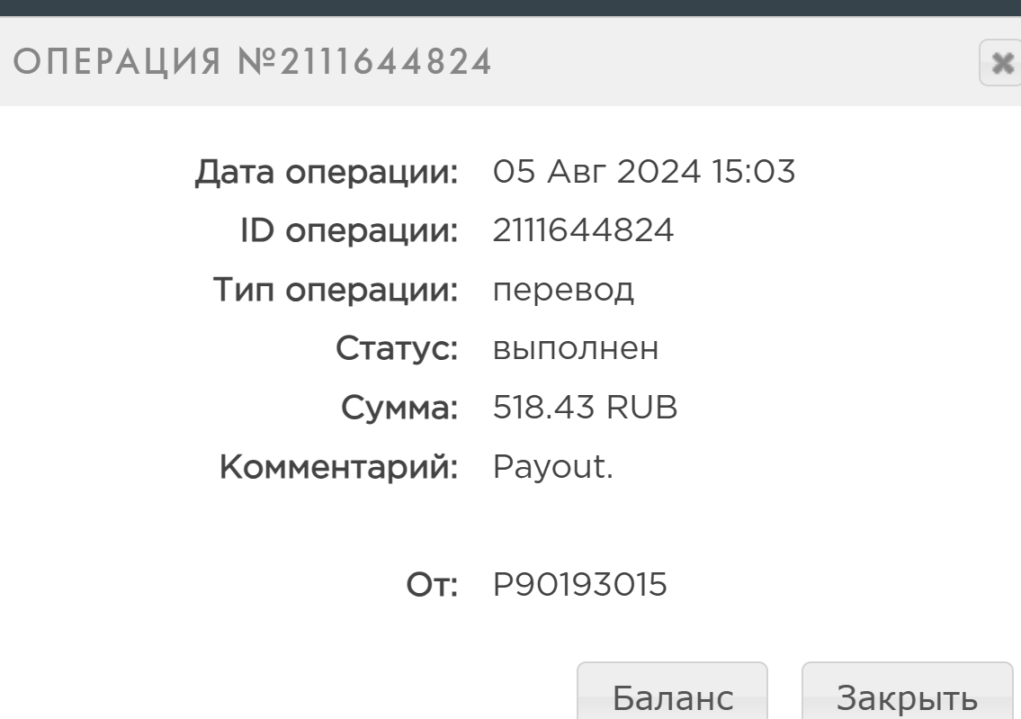 Комментарий: Payout.