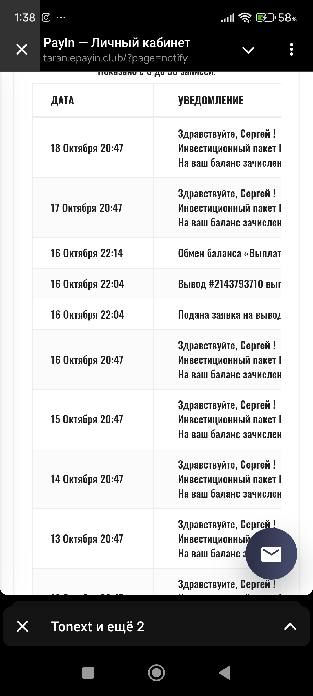 очередная выплата мгновенно!
