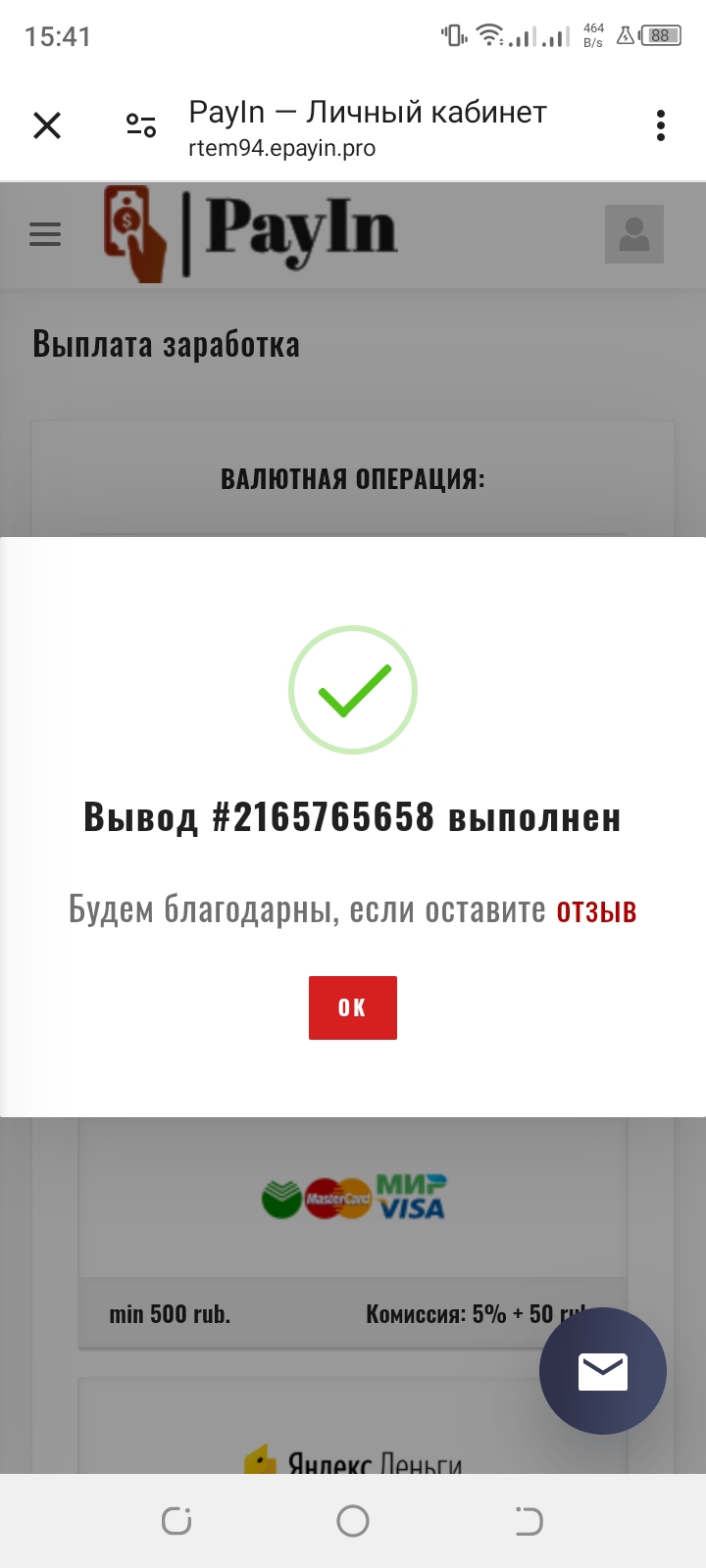 Стабильно, быстро, удобно ! Получил денежку